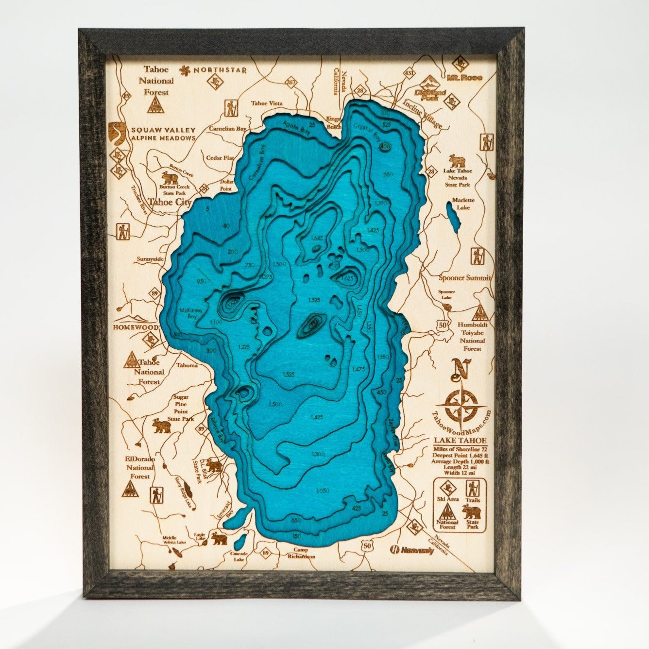 Lake Tahoe Bathymetric Layered Wooden Map