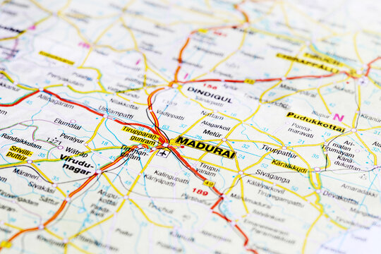 Madurai city road map area. Closeup macro view Stock Photo | Adobe