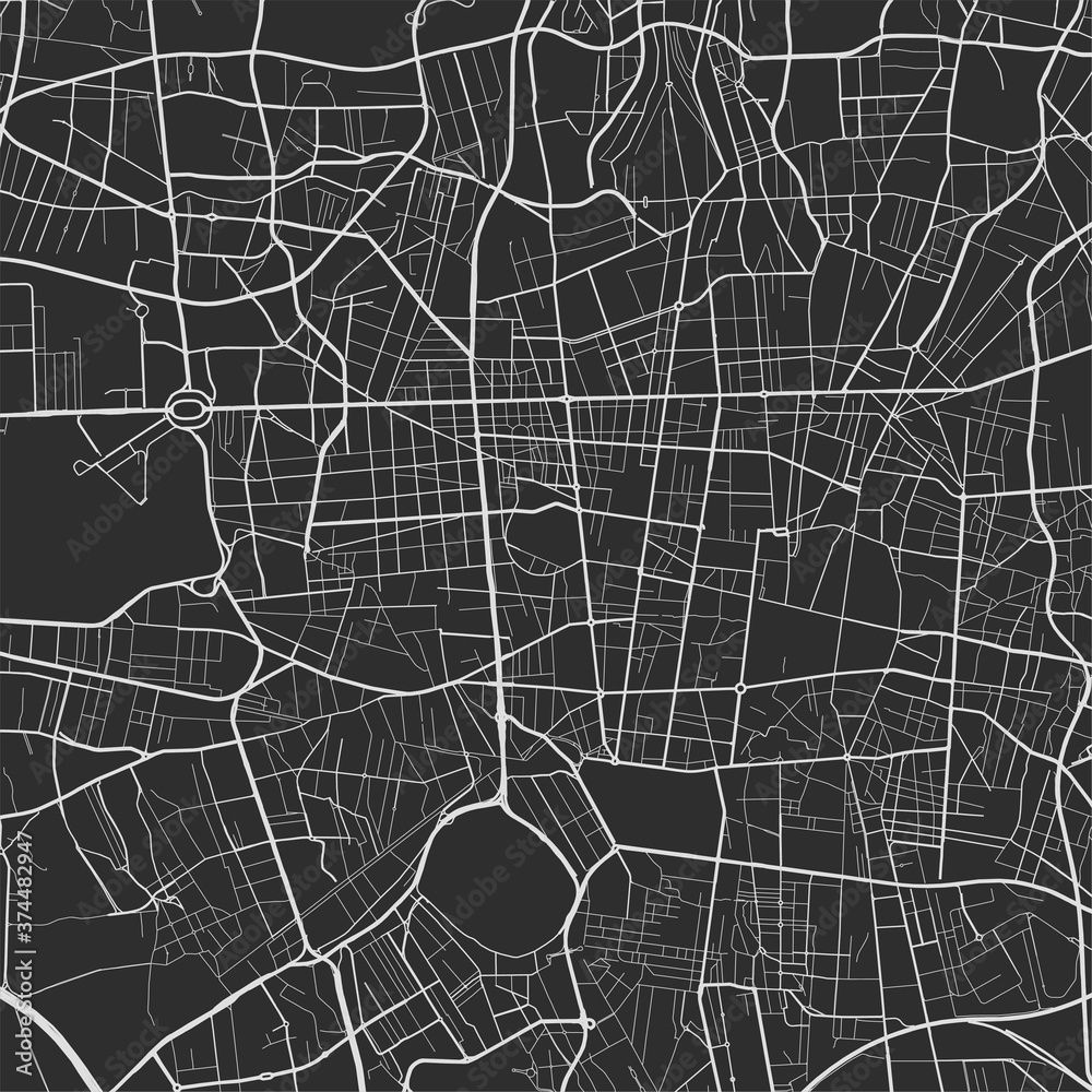 Urban city map of Tehran. Vector poster. Grayscale street map