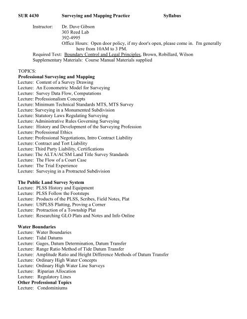 SUR 4430 Surveying and Mapping Practice Syllabus Instructor: Dr