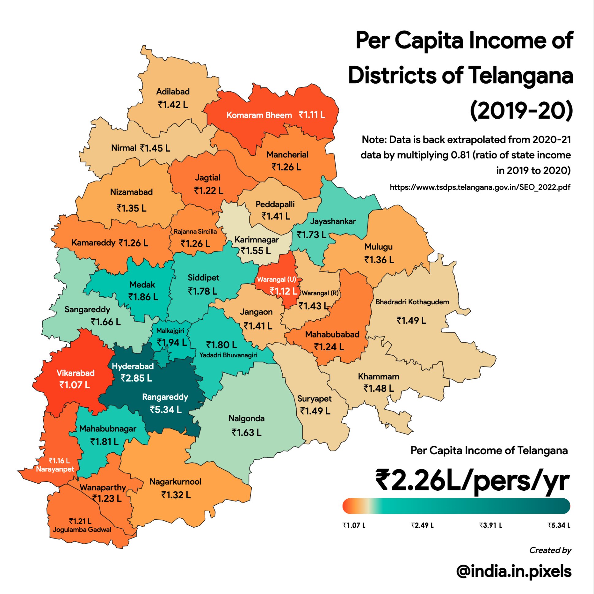 Telangana District Wise Map India in Pixels by Ashris on X: “Per Capita Income of the : Telangana Election 2023 Winners List: This list will be updated as the Election Commission of India declares the official results. Photo: AP Telangana Assembly Election Result 2023 Winners List . The code is six digits long. You can find out the pin code of Hyderabad district in Telangana right here. The first three digits of the PIN represent a specific geographical region called a .